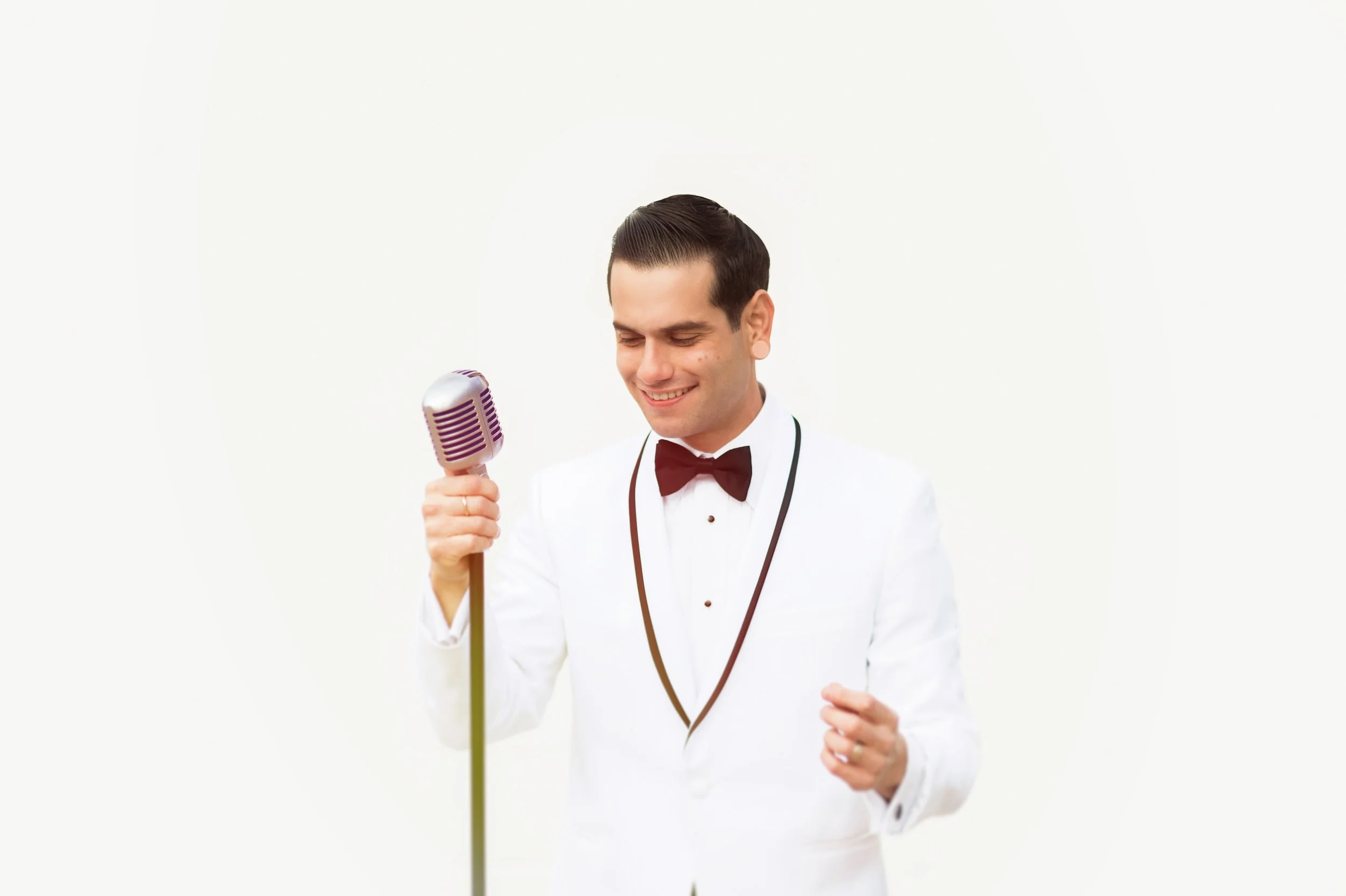 Mark Monistere sings “Sway” and plays the saxophone while leading his quartet on the Morning Show.